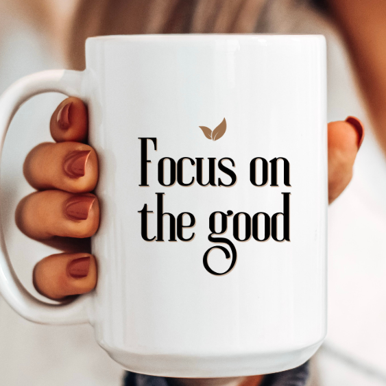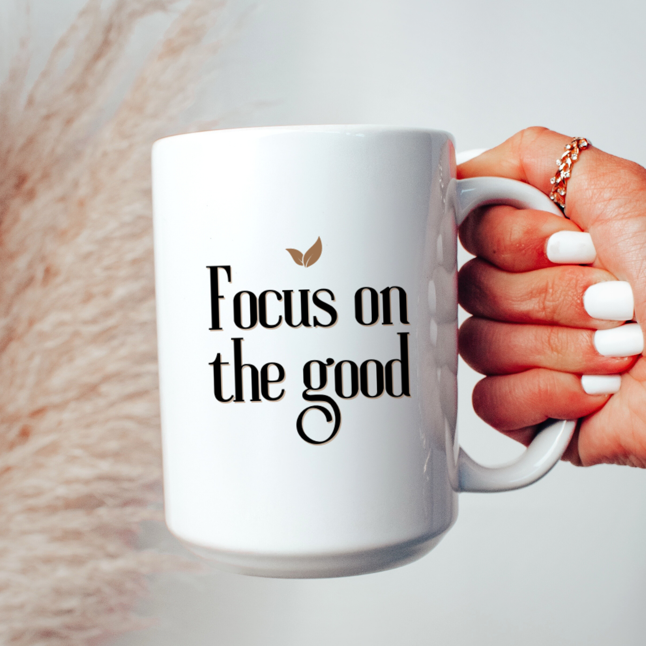 This mug is the perfect piece to enjoy your morning coffee or tea, with its modern design, it features the words "focus on the good" to remind you to stay positive and mindful throughout your day. Elevate your daily routine with this beautiful and meaningFull addition to your kitchen aesthetics.