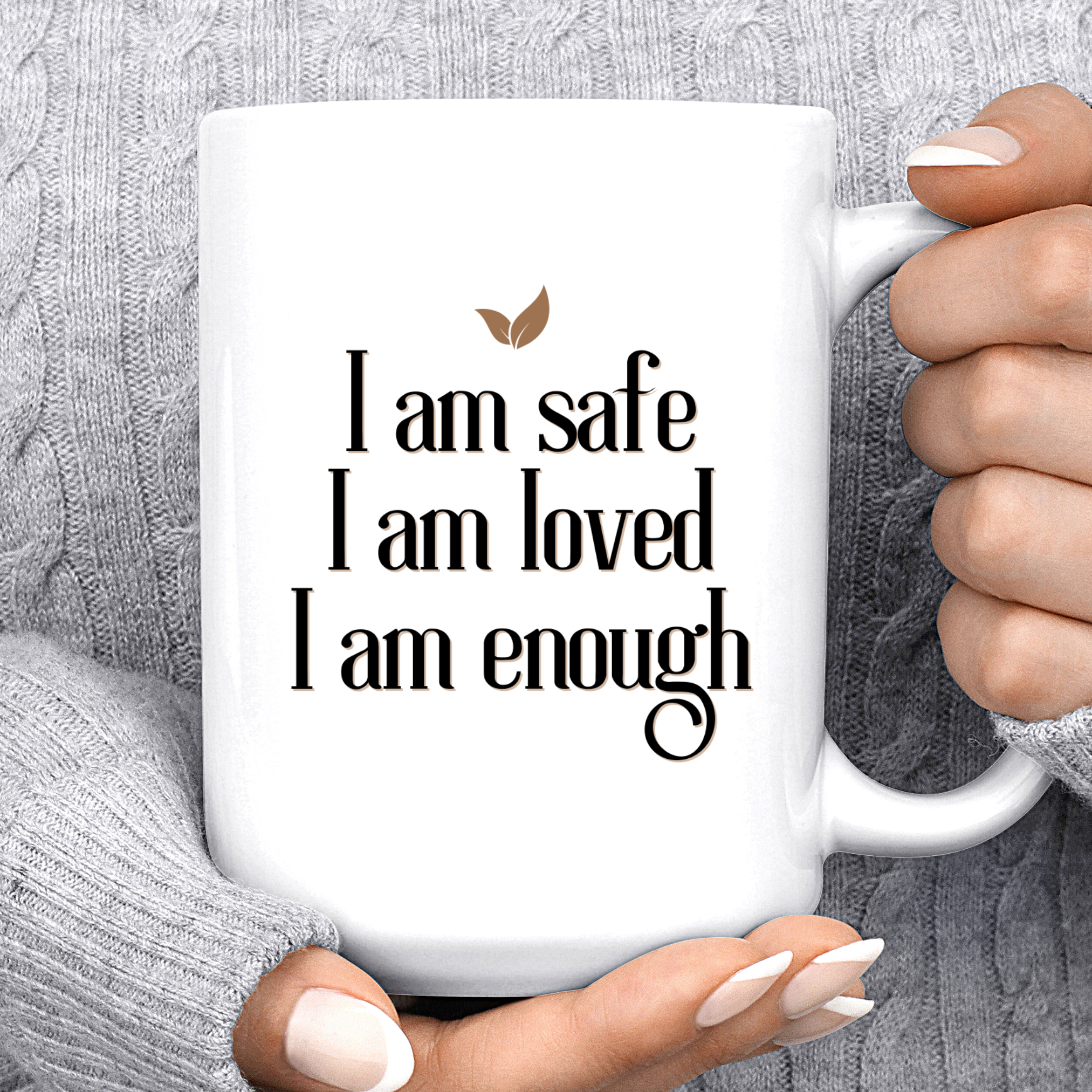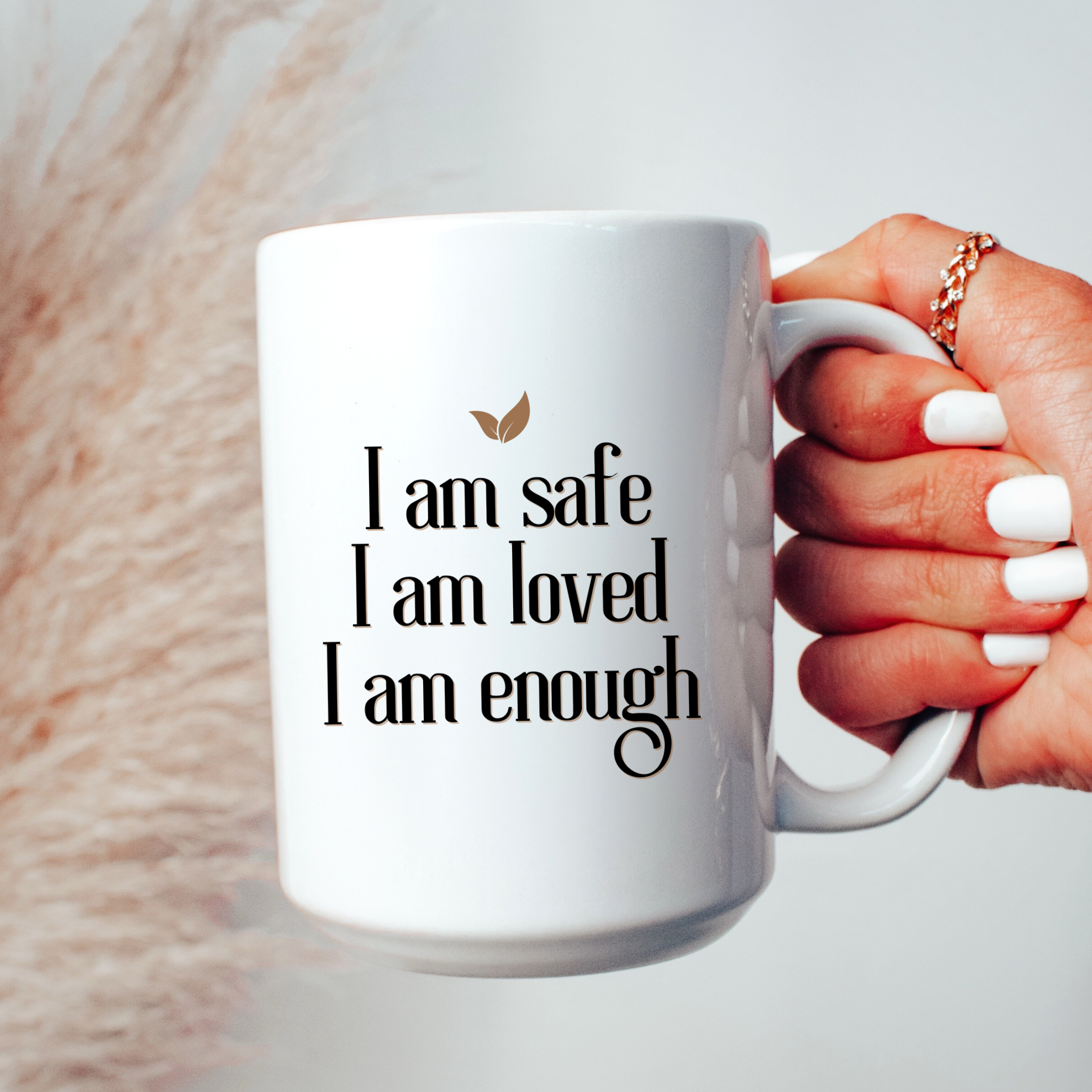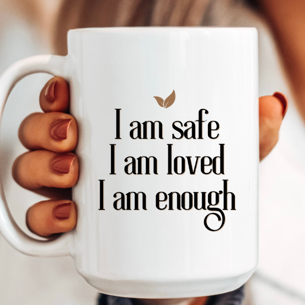 It is not just a mug, it is a mantra. The words "I am safe, I am loved, I am enough" are inscribed on the mug, making it a perfect reminder for anyone who needs a little extra encouragement in their day. The mug's modern design is both simple and stylish, making it special for sipping your favorite drink while keeping your positive affirmations in mind. Get your hands on this mug and start your day off right!