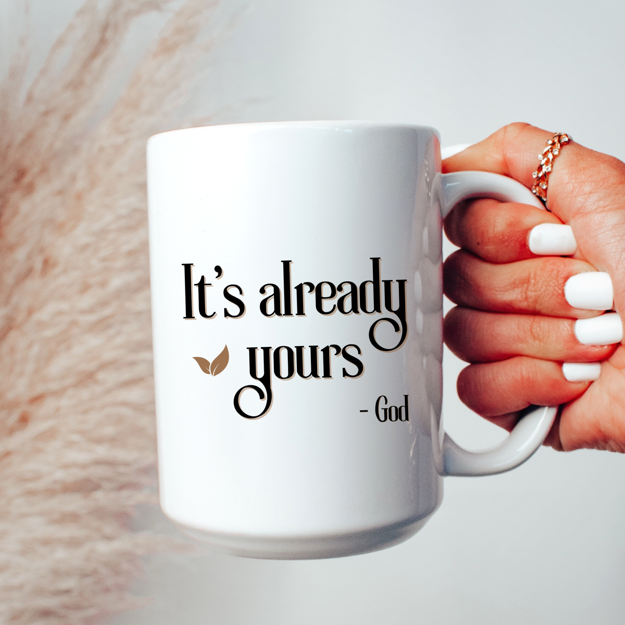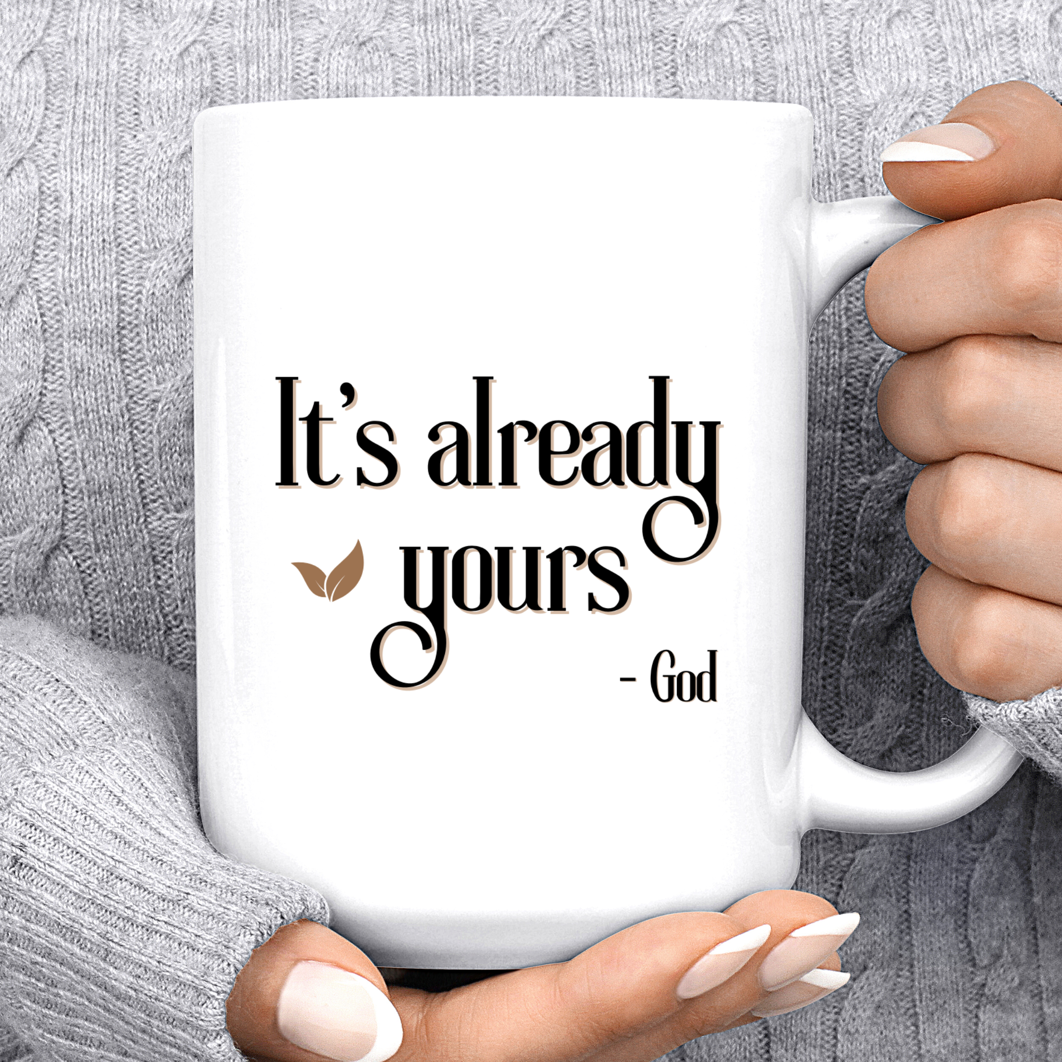 The "It's Already Yours" Mug is a meaningful addition to your daily routine, is the perfect way to start your day with a faithful attitude. The uplifting message serves as a reminder that you have the power to achieve anything you set your mind to. Whether you're sipping your morning coffee or enjoying a cup of tea in the afternoon, this mug is sure to bring a smile to your face.