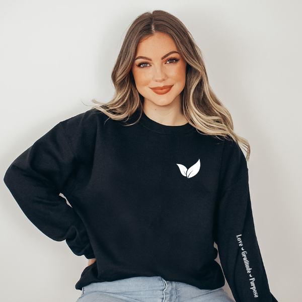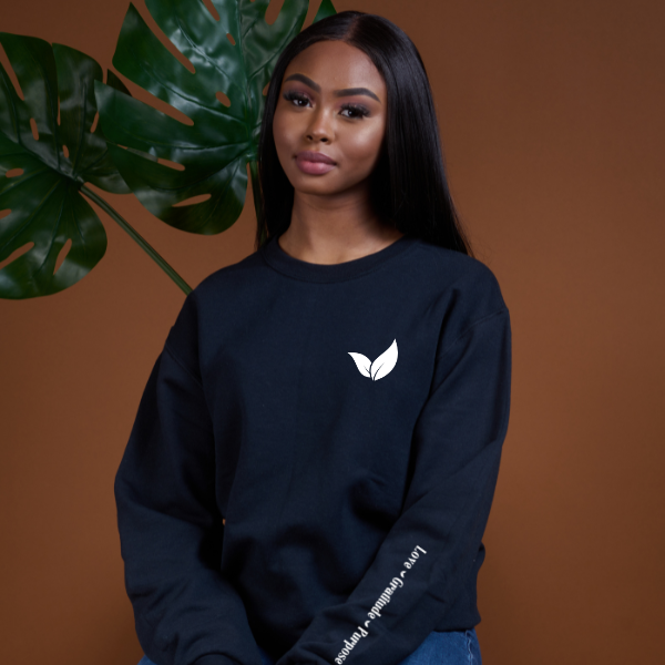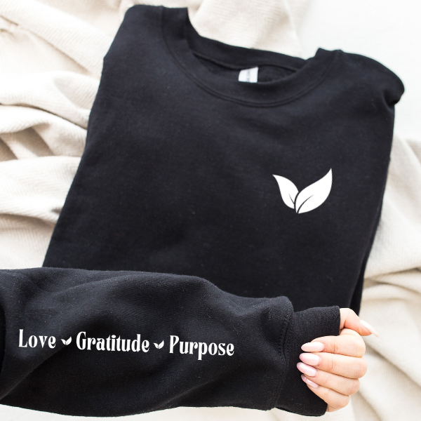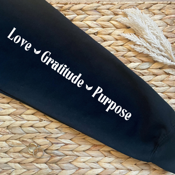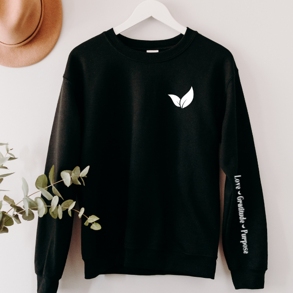 LOVE, GRATITUDE, PURPOSE Mantra Crewneck- Black