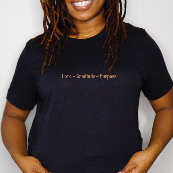 LOVE, GRATITUDE, PURPOSE Tee- Black/Tan Combo