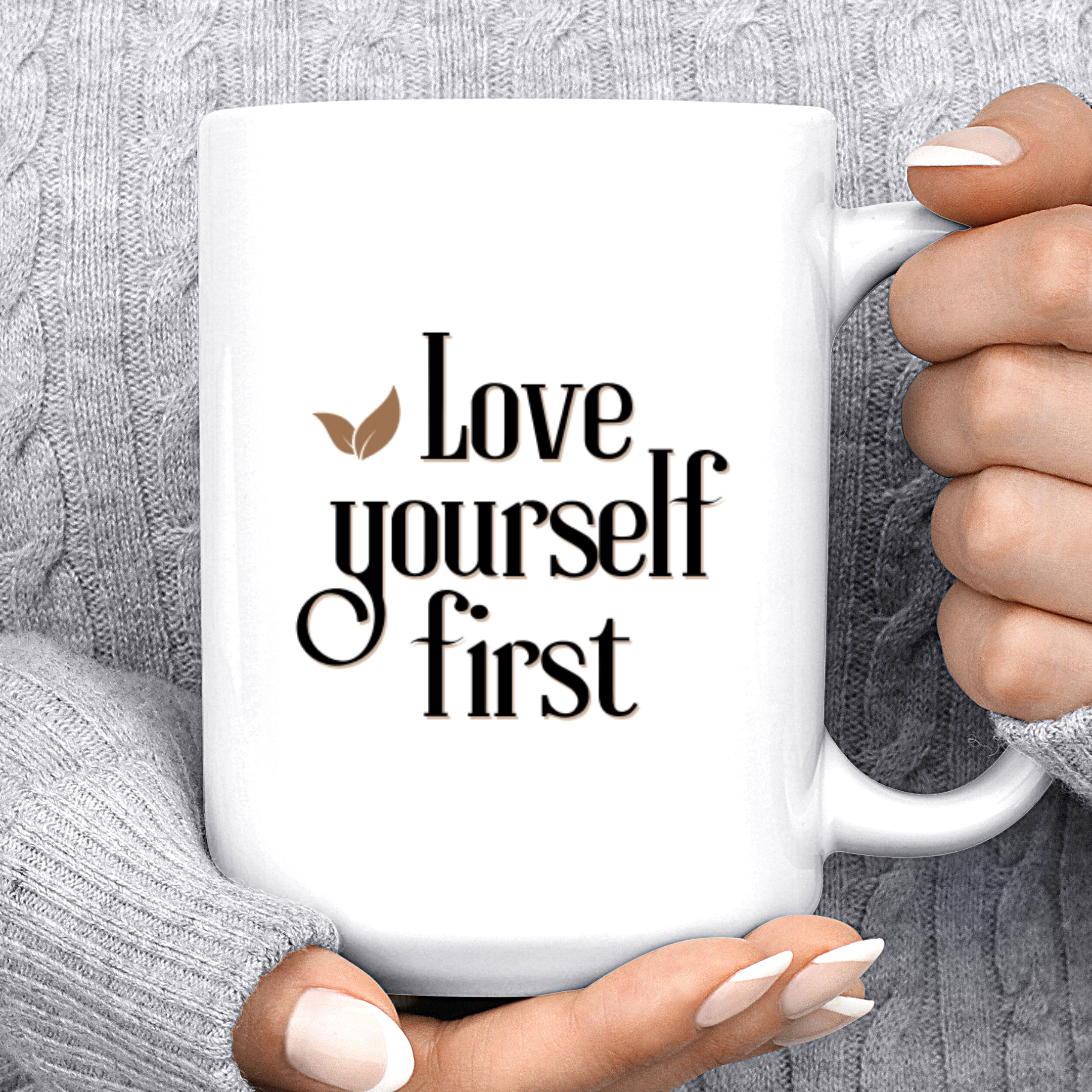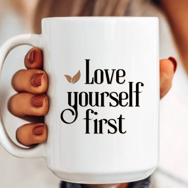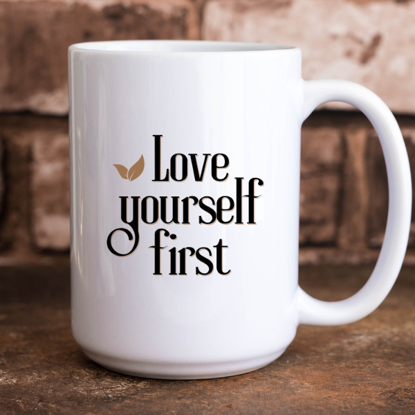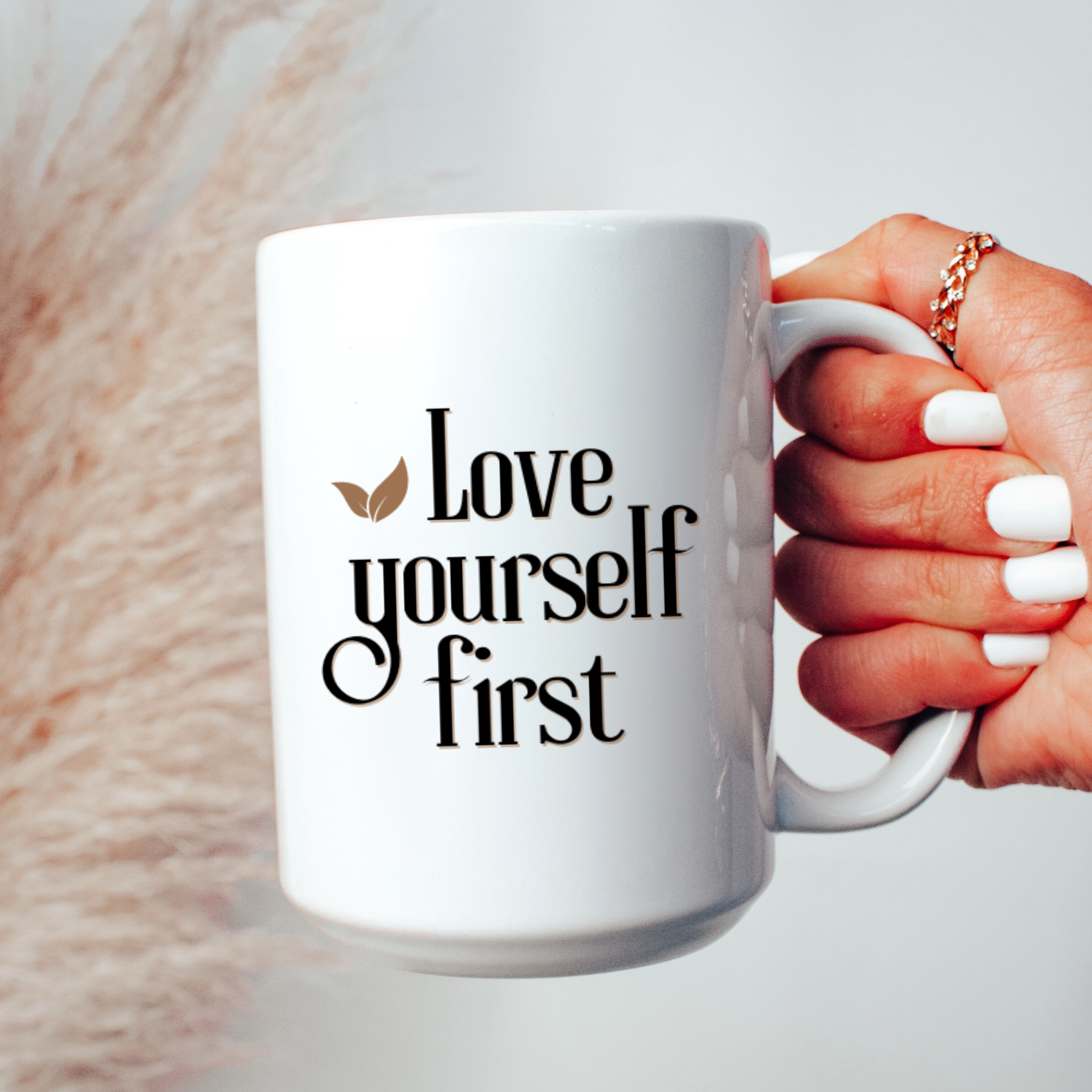 Enjoy your morning coffee or tea in style with this modern and aesthetic mug. Part of our MeaningFull Lifestyle Collection, this mug features the inspiring message "Love Yourself First" to start your day off right. Its minimalist design adds a touch of elegance to your morning routine. Perfect for home or office use, this mug is a must-have for anyone who believes in the importance of self-care and self-love.