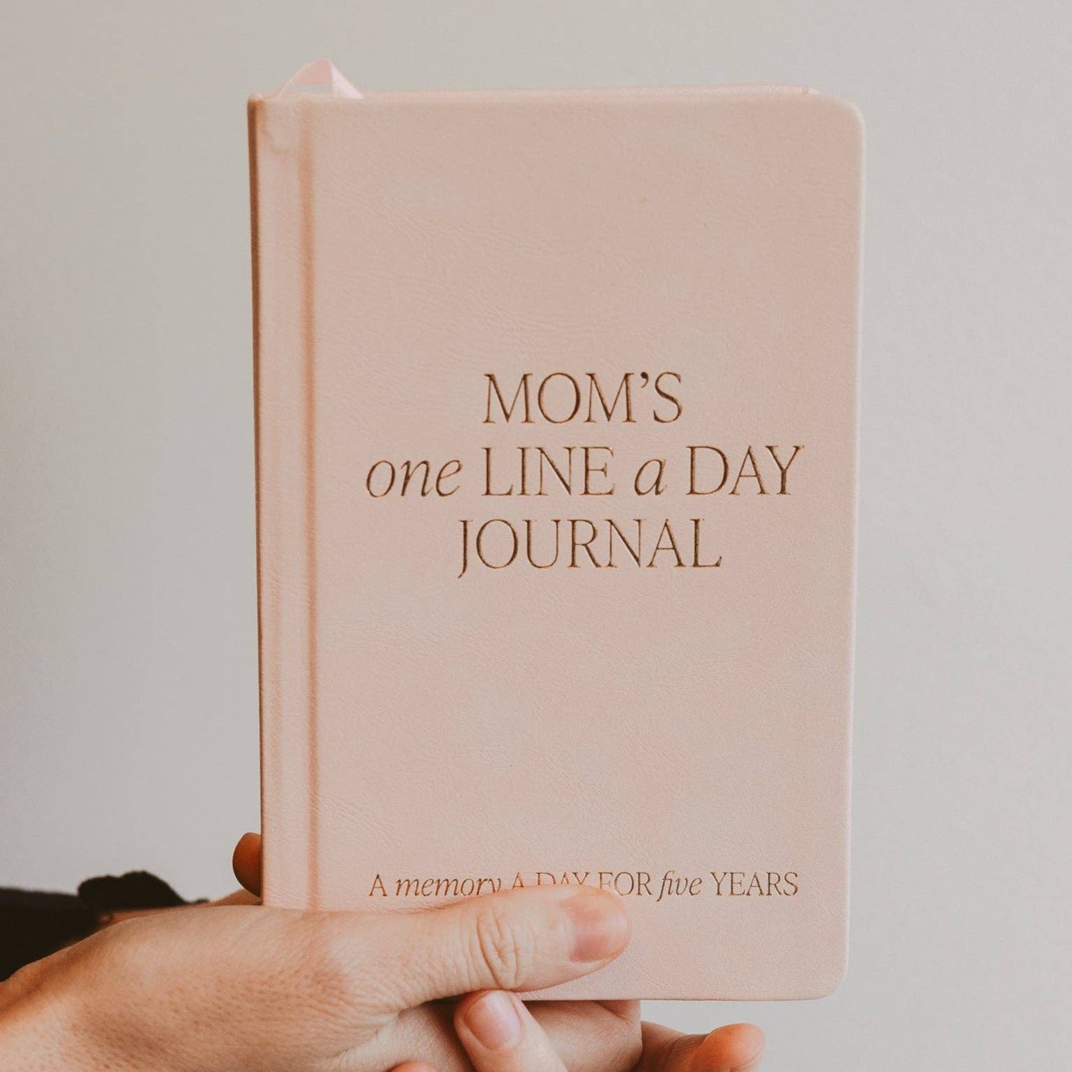 Capture and cherish the fleeting moments of motherhood with Sweet Water Decor's Mom's One Line A Day Leather Journal. Sized conveniently at 4"x 6.5" x .5, the light pink leather journal with gold foil details offers a special place to record and reflect on your little one's milestones and treasured memories.
