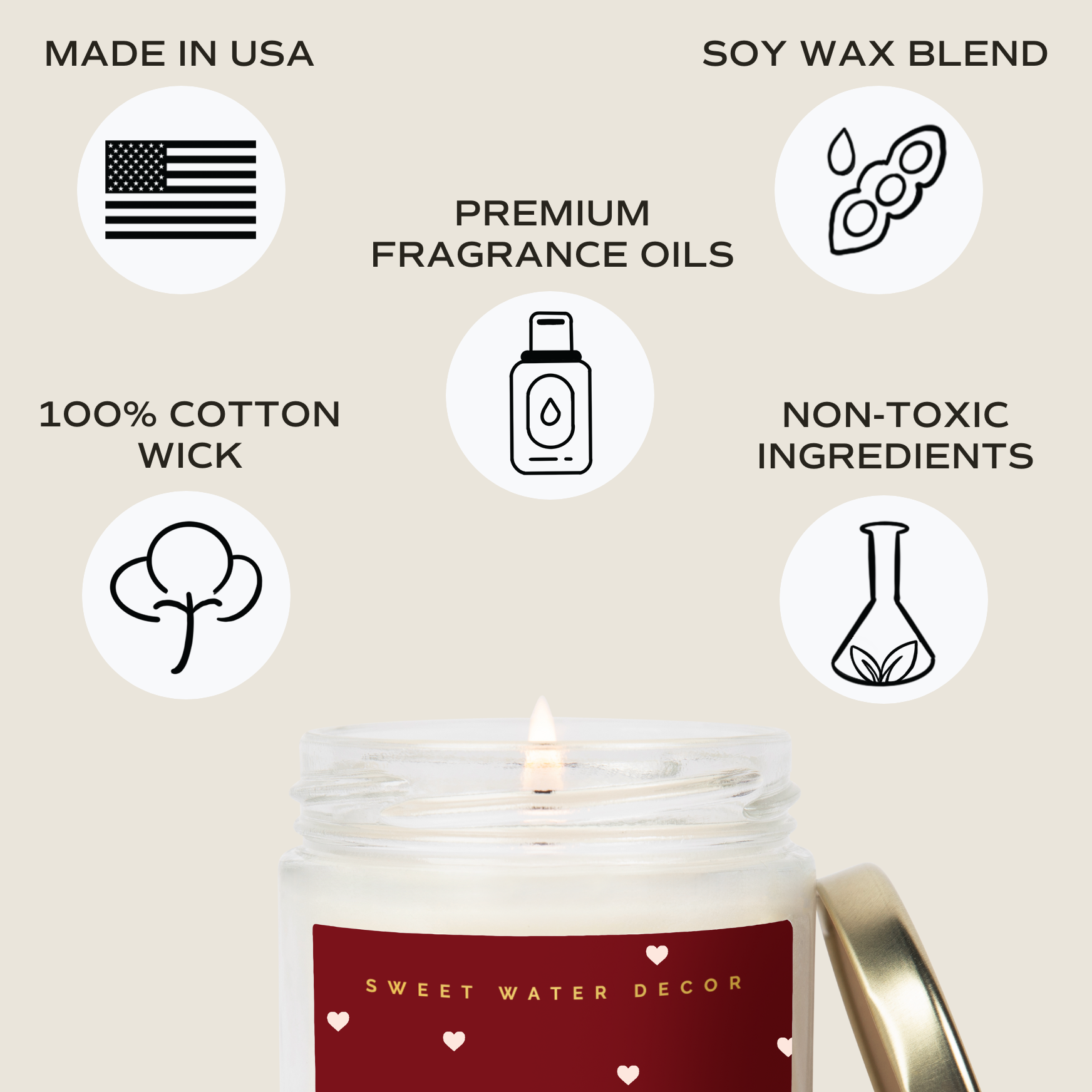 This easy-to-gift candle is the perfect addition to any gift for her or him. A bold red label with simple heart pattern will have them falling in love.