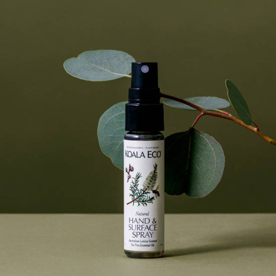 ➝ Koala Eco, Lemon Scented Tea Tree Eco Hand and Surface Mini Spray.