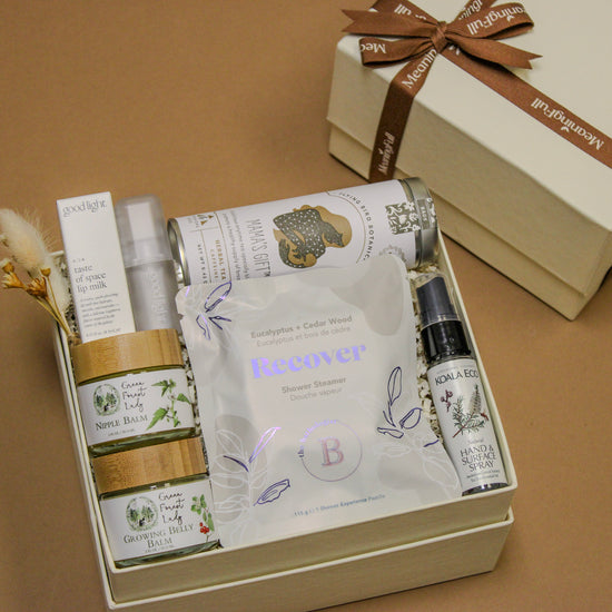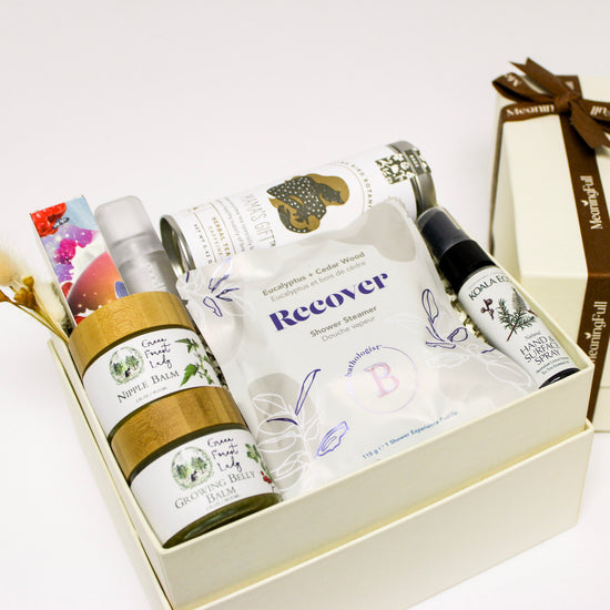 Welcome to motherhood! Treat yourself or a new mom to the ultimate relaxation with Recover - a luxury box filled with items to help you unwind and adjust to this new chapter. Say goodbye to stress and hello to self-care.