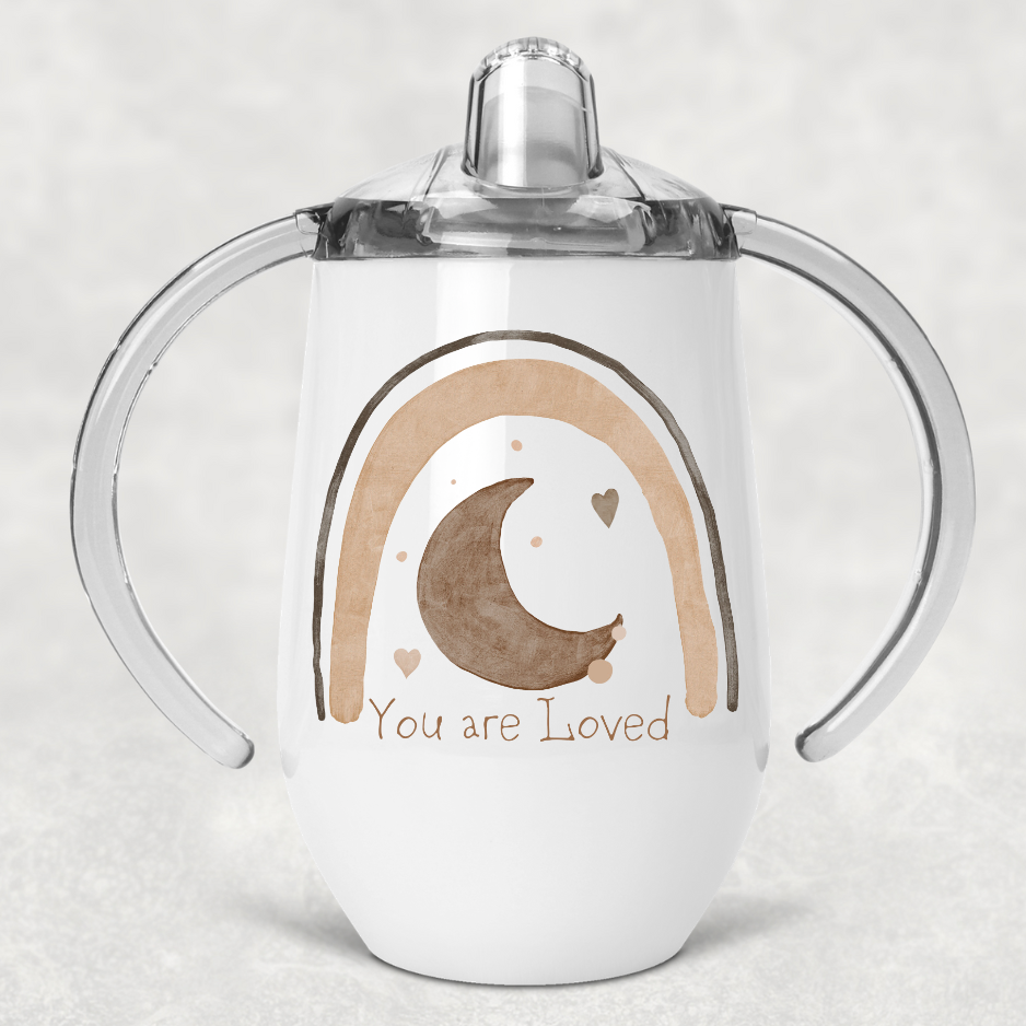 Is there a more adorable sippy cup? Our 'You Are Loved' sippy cup features a customizable neutral and aesthetic design suitable for any baby. Let them sip in style while reminding them how loved they are.